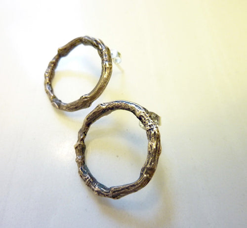 Linden Twig Hoop Earrings, Oxidized Bronze or Sterling Silver