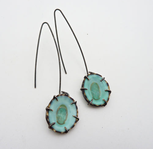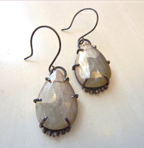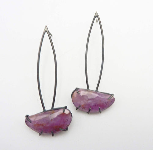 Compass Rose Earrings, Rosecut Sapphire Hexagon Cabochons