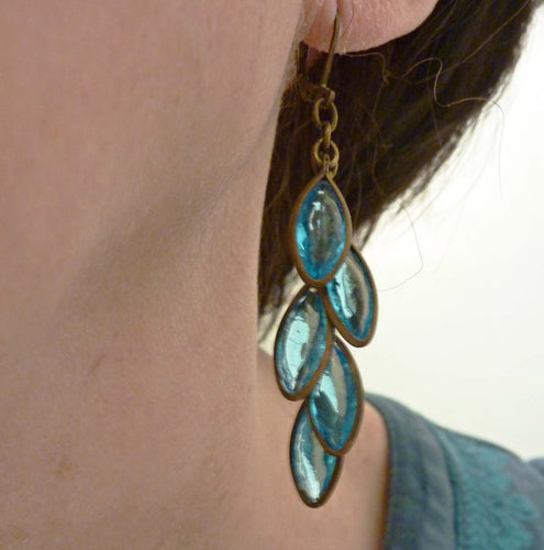 Cascading Leaves Earrings in Turquoise Blue Crystal
