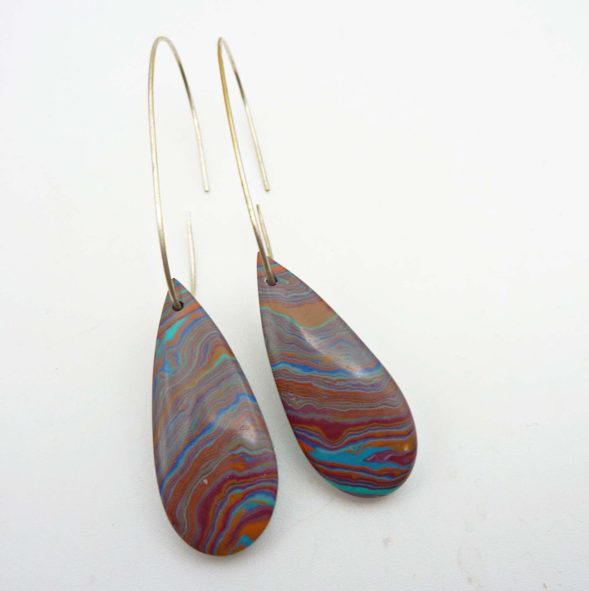 Earrings measure 2 3/4" long x 1/2" wide.Earrings measure 2 3/4" long x 1/2" wide. They are one-of-a -kind.